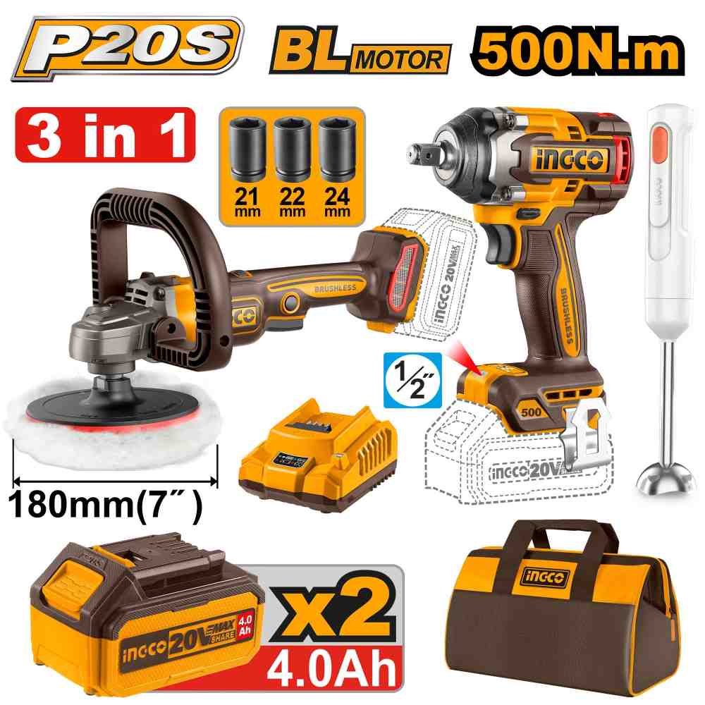 مجموعة فرد شد 20 فولت احترافي مع خلاط يدوي و2 بطارية ليثيوم 4.0Ah وشاحن (3 قطعة)