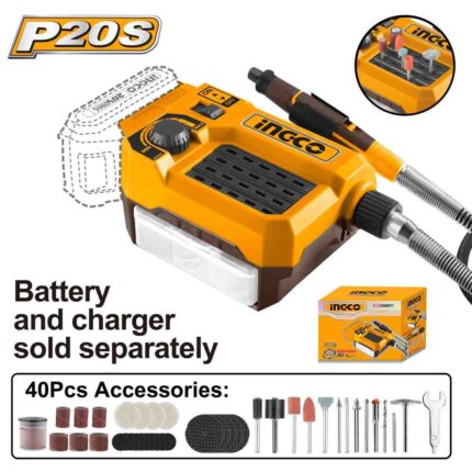 صاروخ بطارية 20 فولت 900W 115 مم براشلس احترافي مع 2 بطارية ليثيوم 4.0Ah وشاحن وشنطة