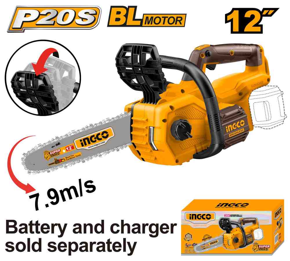 منشار جنزير بطارية براشلس 20 فولت 12″ بدون بطارية وشاحن احترافي